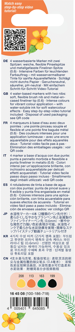 Atraskite neribotas kūrybos galimybes su Faber-Castell Gofa Aqua Dual Marker „Leaves” akvareliniais žymekliais. Šie inovatyvūs dvipusiai žymekliai puikiai tinka menininkams, iliustratoriams, studentams ir visiems, kurie ieško universalaus įrankio detaliems piešiniams ir išraiškingiems akvarelės efektams kurti.
