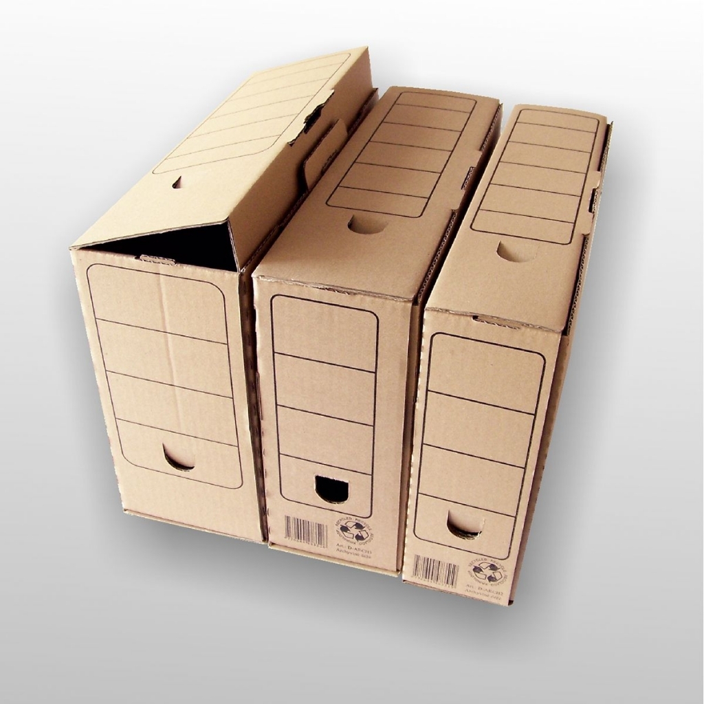 Archyvavimo dėžė su spauda, rudo trisluoksnio gofro kartono, 345x255x100 mm