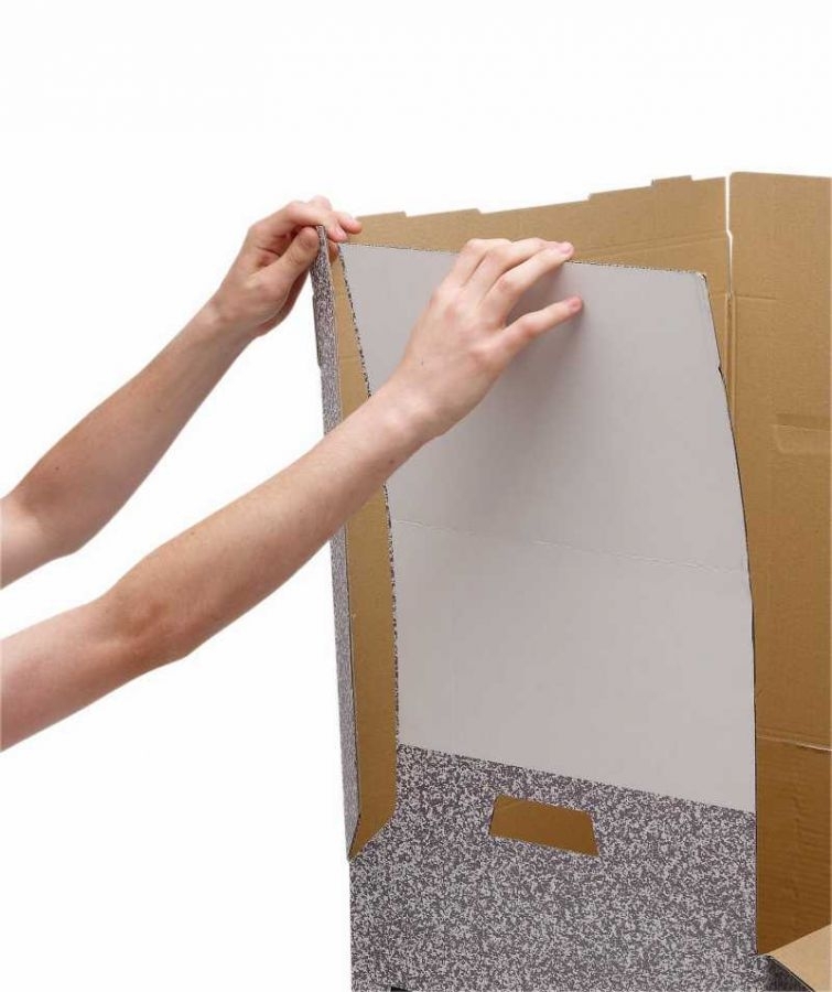 1. Atverkite dėžę ir išskleiskite šonines sieneles.
