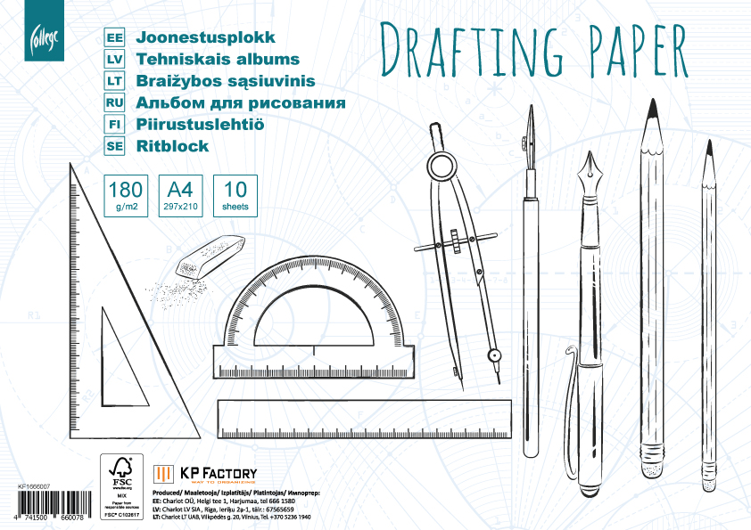 Braižybos sąsiuvinis College, A4, 180g, 10 lapų