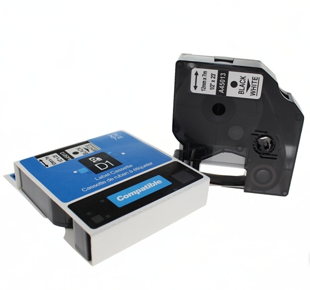 Etikečių juostelė Dymo D1, 12mm x 7m, juodas šriftas ant baltos juostelės, analogas