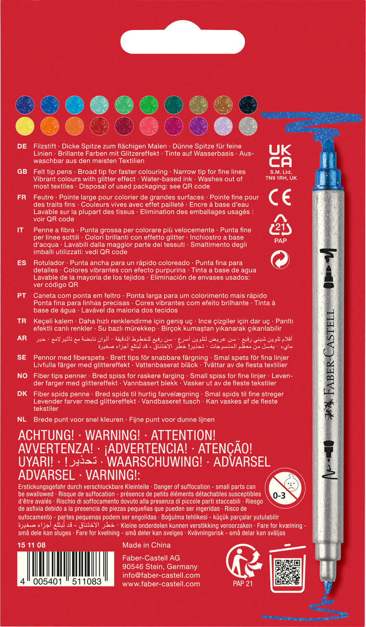 Išlaisvinkite savo kūrybiškumą su „Faber-Castell“ „Glitter Set“ pluošto antgalio rašikliais, sukurtais suteikti akinančio spindesio visiems jūsų meno darbams. Ši ryški, įvairiaspalvė kolekcija puikiai tinka žavingiems blizgučių efektams pridėti prie piešinių, sveikinimo atvirukų, skrebinimo puslapių ir įvairių rankdarbių projektų. Nesvarbu, ar esate pradedantysis menininkas, studentas ar patyręs meistras, šie rašikliai siūlo smagų ir patrauklų būdą, kaip jūsų kūrybą iš tiesų priversti spindėti.