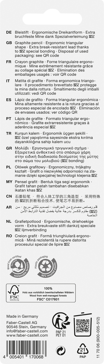 Kiekvienas Faber-Castell Grip Flow Edition HB rinkinio grafitinis pieštukas turi aukštos kokybės šerdį, kuri užtikrina sklandų slydimą popieriumi ir aiškias linijas be įbrėžimų. Tai puikus pasirinkimas tiek moksleiviams ir studentams, tiek menininkams ir profesionalams, ieškantiems patikimos ir patogios priemonės savo idėjoms įgyvendinti.