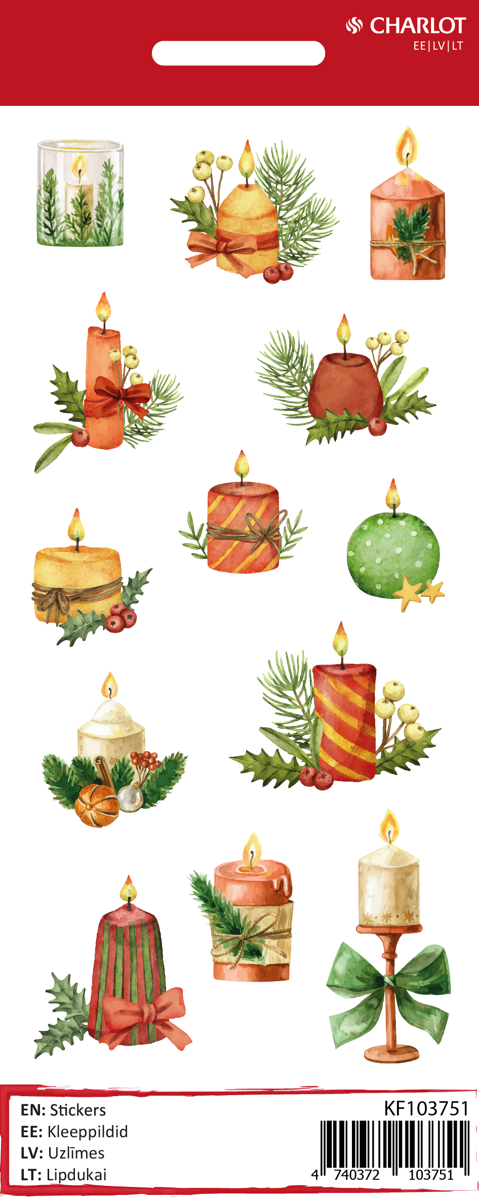 Paverskite savo žvakes šventiniais meno kūriniais šį kalėdinį sezoną su Charlot kalėdinėmis žvakių etiketėmis. Šie žavingi, savaime prilimpantys lipdukai yra sukurti, kad suteiktų bet kuriai žvakei ypatingos kalėdinės nuotaikos, todėl puikiai tinka jūsų šventiniam interjerui papuošti arba kaip apgalvotos rankų darbo dovanos.