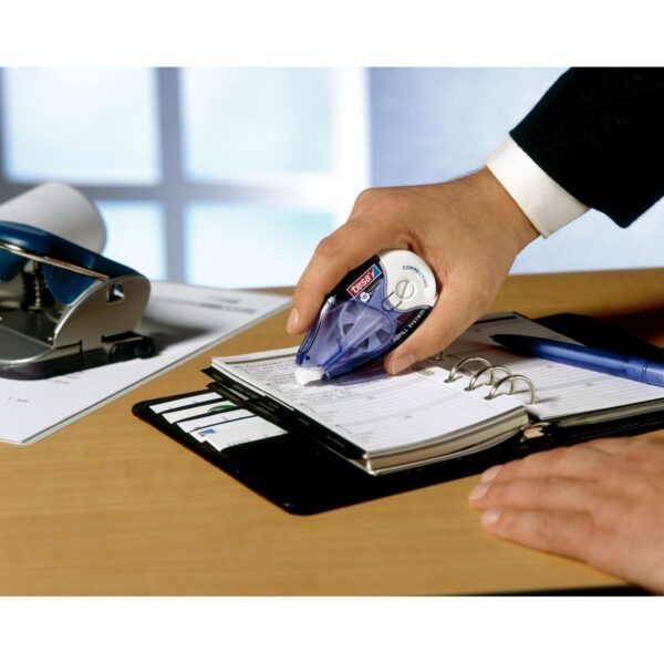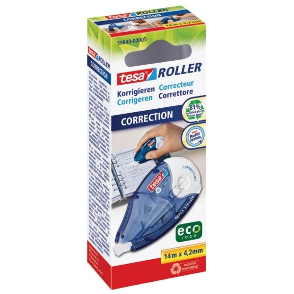 korektūros juostelė, TESA, ekologiška, keičiama, 4.2mm, 14m, rašymo pataisymas, biuro reikmenys, mokyklinės prekės, aplinkai draugiška, aukštos kokybės, patogi, lengva naudoti, sklandus tepimas