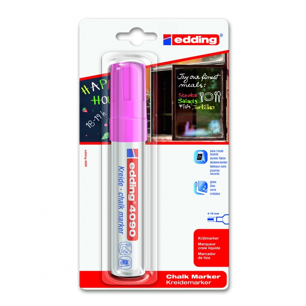Kreidinis žymeklis Edding 4090, kirstu galiuku, 4-15mm, rožinės spalvos