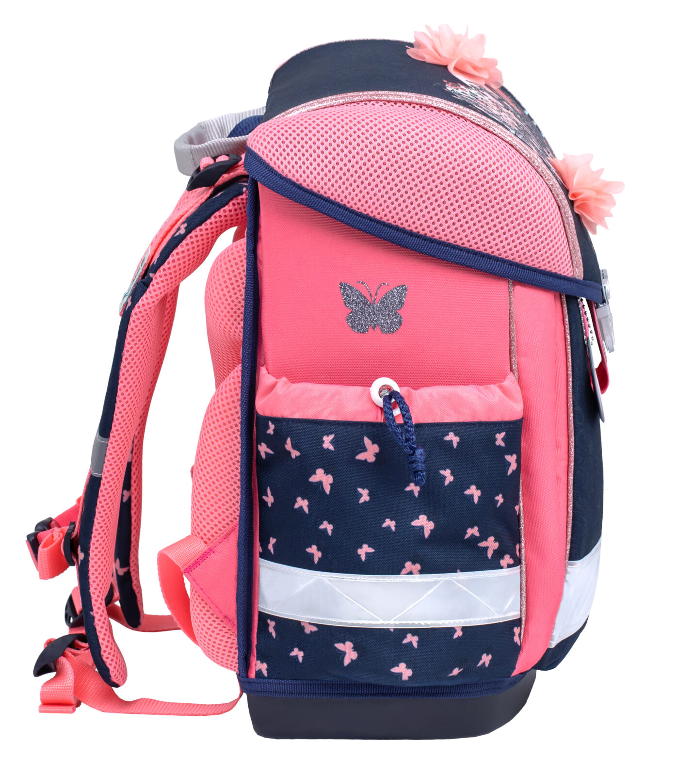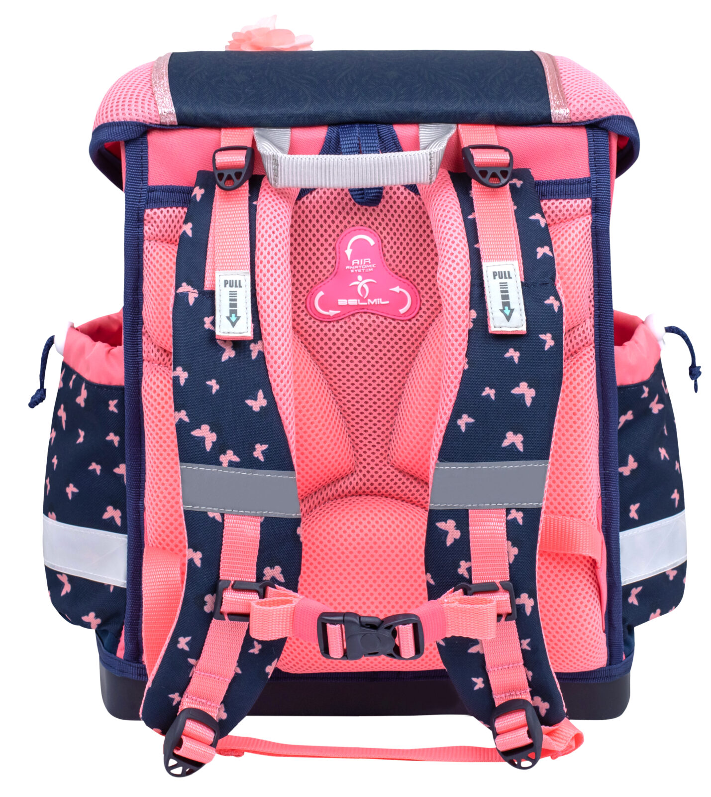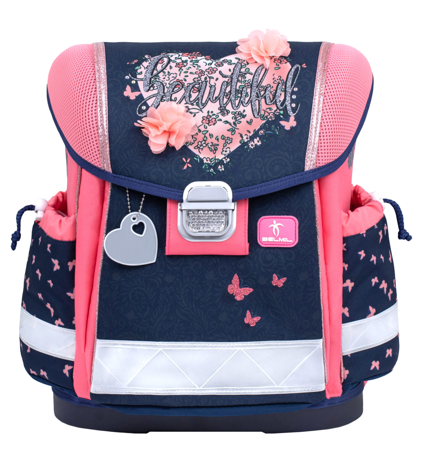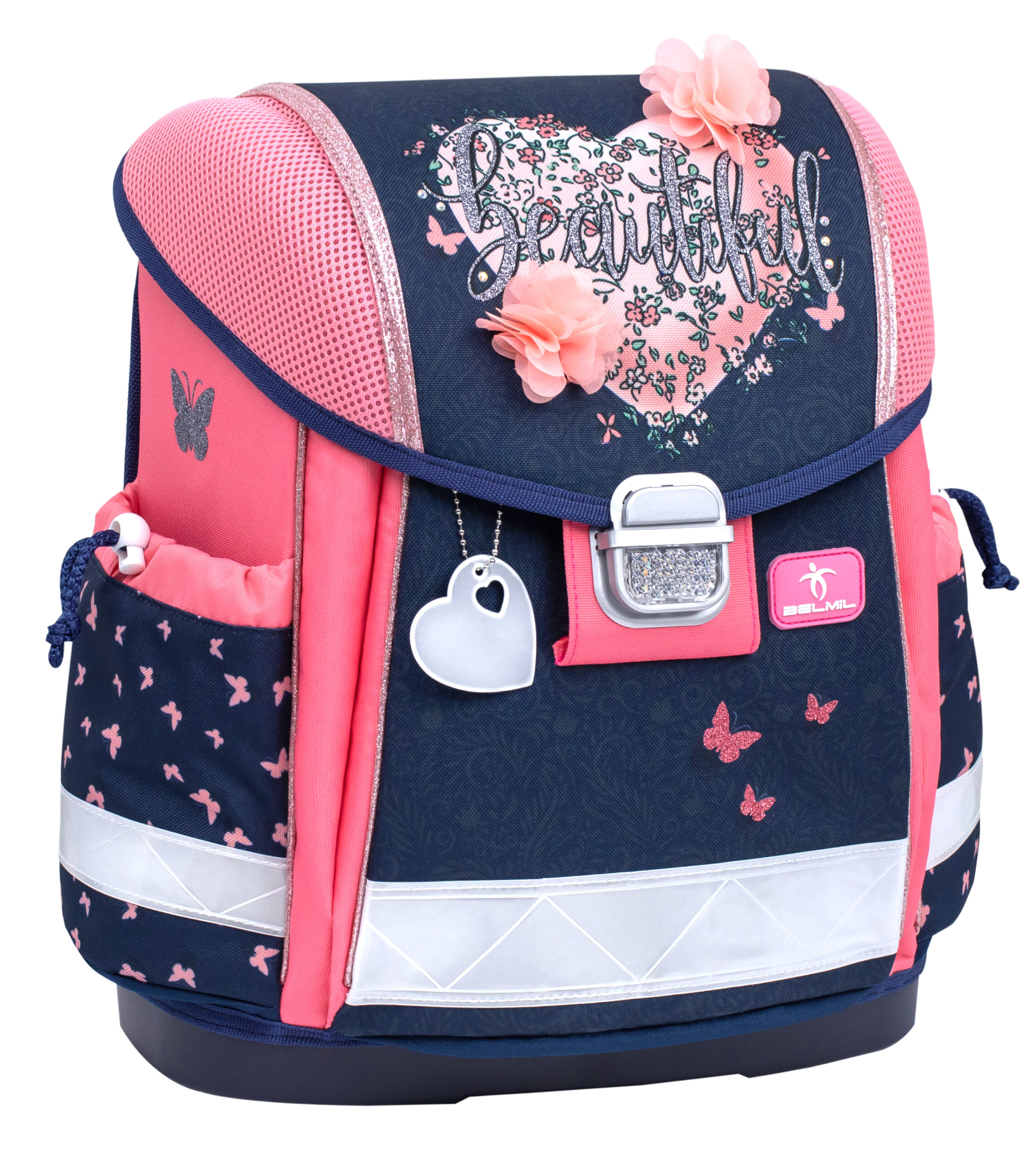Viduje erdviame kuprinės skyriuje, turinčiame tris didelius skyrius, apgalvota sistema padeda vaikams palaikyti tvarką tarp mokyklinių reikmenų, telpa visų dydžių vadovėliai ir sąsiuviniai. Patogios šoninės kišenės suteikia lengvą prieigą prie vandens buteliuko (iki 0,7 l) ar nedidelio skėčio, užtikrinant, kad viskas, ko reikia moksleiviui dienai, būtų tvarkingai sudėta ir lengvai pasiekiama. Stilingas dizainas, praktiškos funkcijos ir rūpinimasis saugumu daro Belmil 403-13/AG „Beautiful Flowers” kuprinę puikiu palydovu bet kuriam moksleiviui.