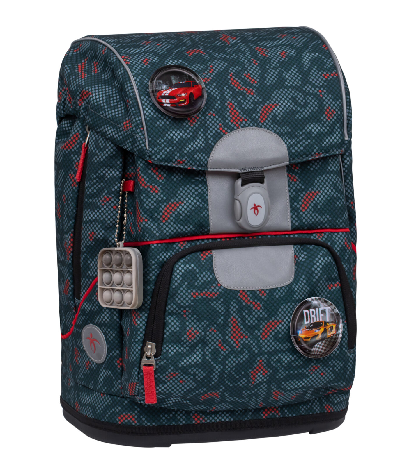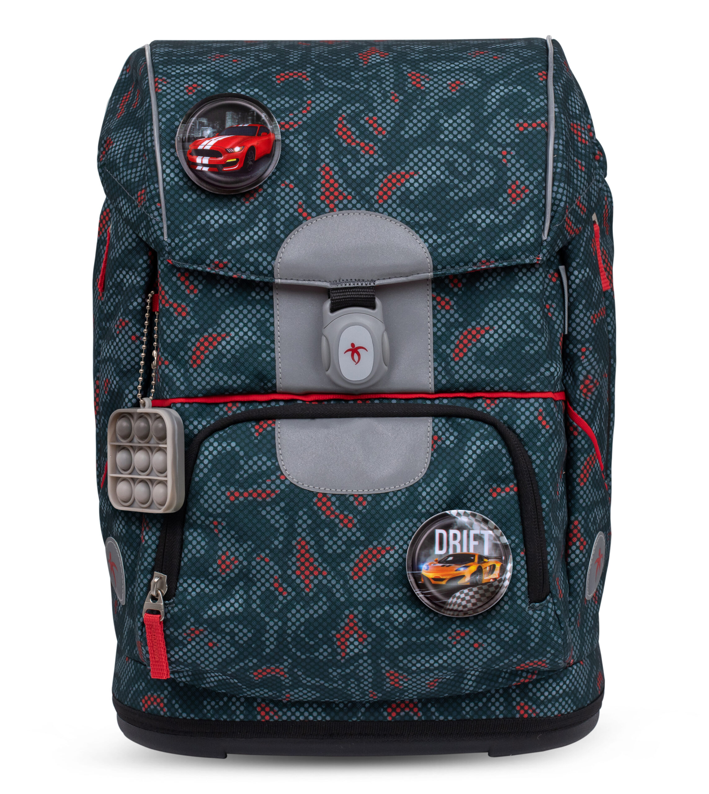 - Ryškus dizainas: Stilingas dizainas su raudonais taškeliais ant mėlyno fono patrauks dėmesį ir suteiks kuprinei žaismingumo.