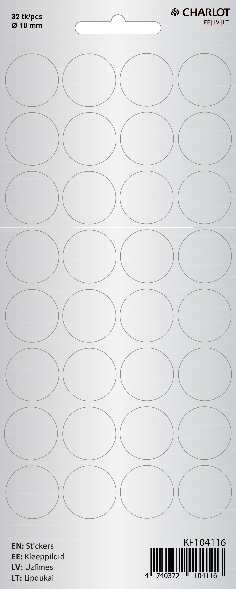 Lipdukas Charlot Ø18mm 32vnt./lapas sidabrinis