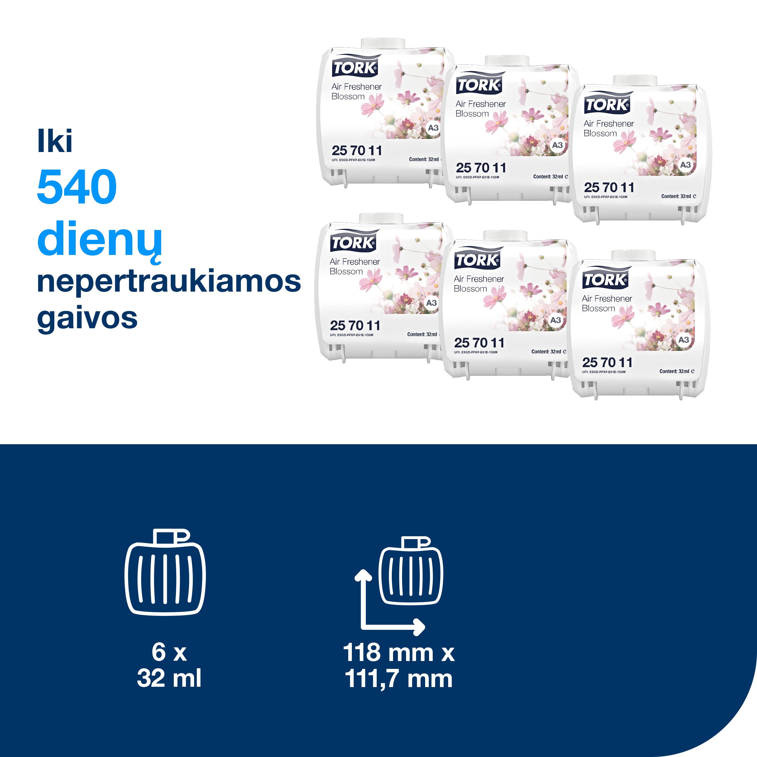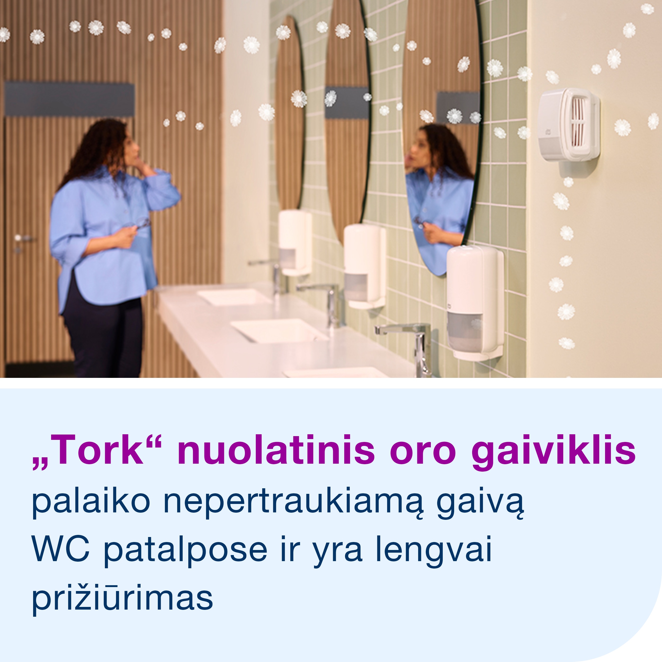 • Tinka „Tork“ nuolatinio oro gaiviklio dozatoriams, kuriuos valytojams lengva naudoti.
