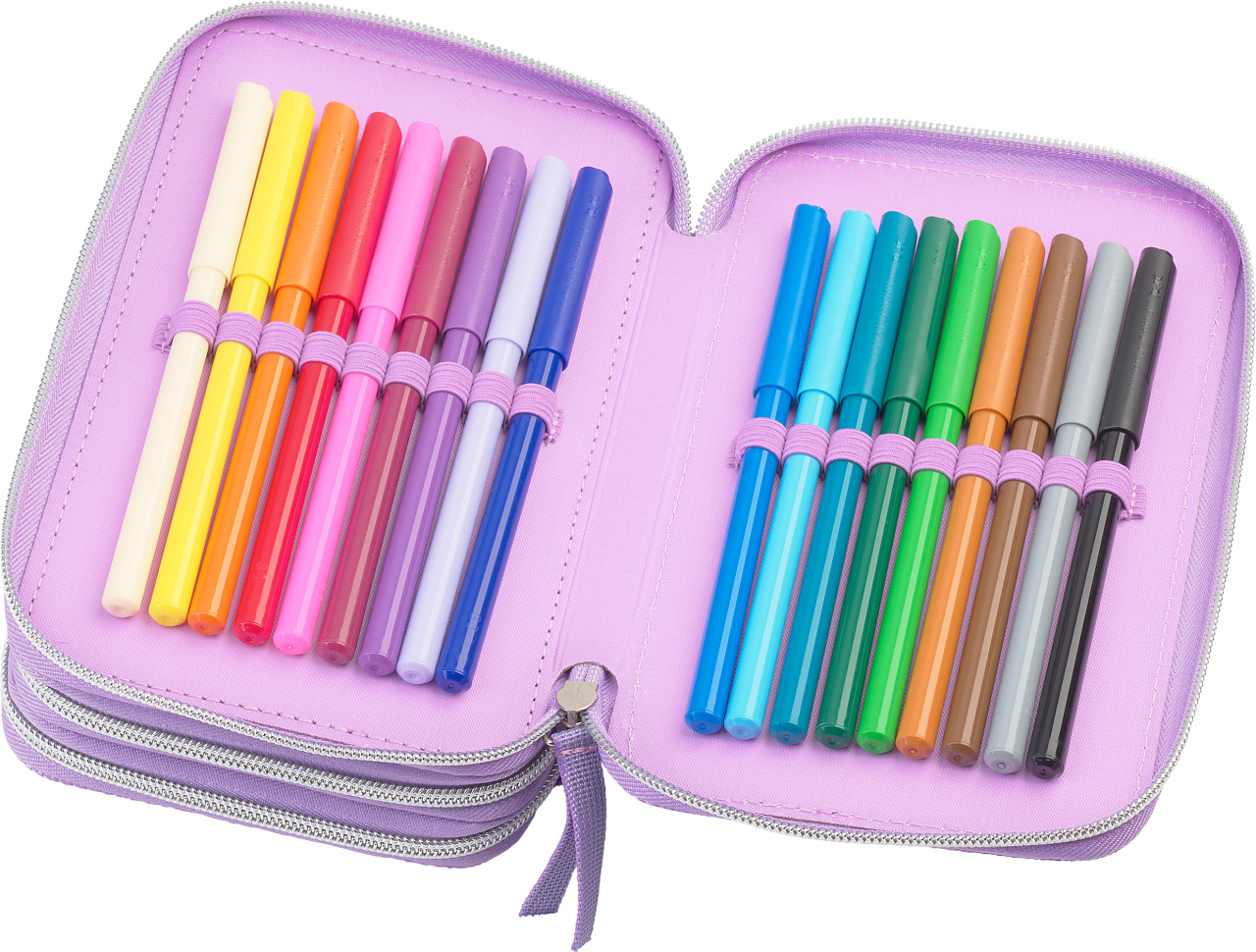 Tiesiog atidarykite užtraukiamus skyrius ir sudėkite mėgstamiausius reikmenis. Naudokite atskirus skyrius, kad tvarkingai sudėtumėte skirtingų tipų reikmenis ir lengvai juos pasiektumėte. Pridėtos kanceliarinės prekės siūlo įvairias galimybes rašymui, piešimui, spalvinimui ir dar daugiau.