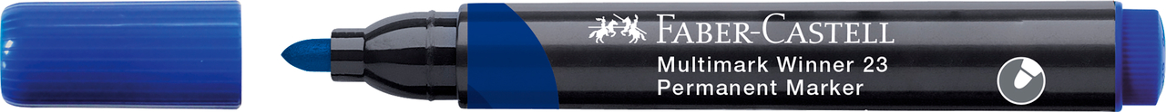 Faber-Castell „Multimark Winner 23” permanentinis žymeklis mėlyna spalva yra universalus jūsų pagalbininkas, skirtas aiškiam ir patvariam žymėjimui ant įvairiausių paviršių. Sukurtas su greitai džiūstančiu, vandeniui ir šviesai atspariu rašalu, šis patikimas žymeklis užtikrina, kad jūsų užrašai ir žymės išliks ryškūs ir aiškūs, atsparūs išblukimui ir išsitepimui. Tai puikus pasirinkimas tiek profesionaliam naudojimui, tiek kasdienėms užduotims namuose ar biure.