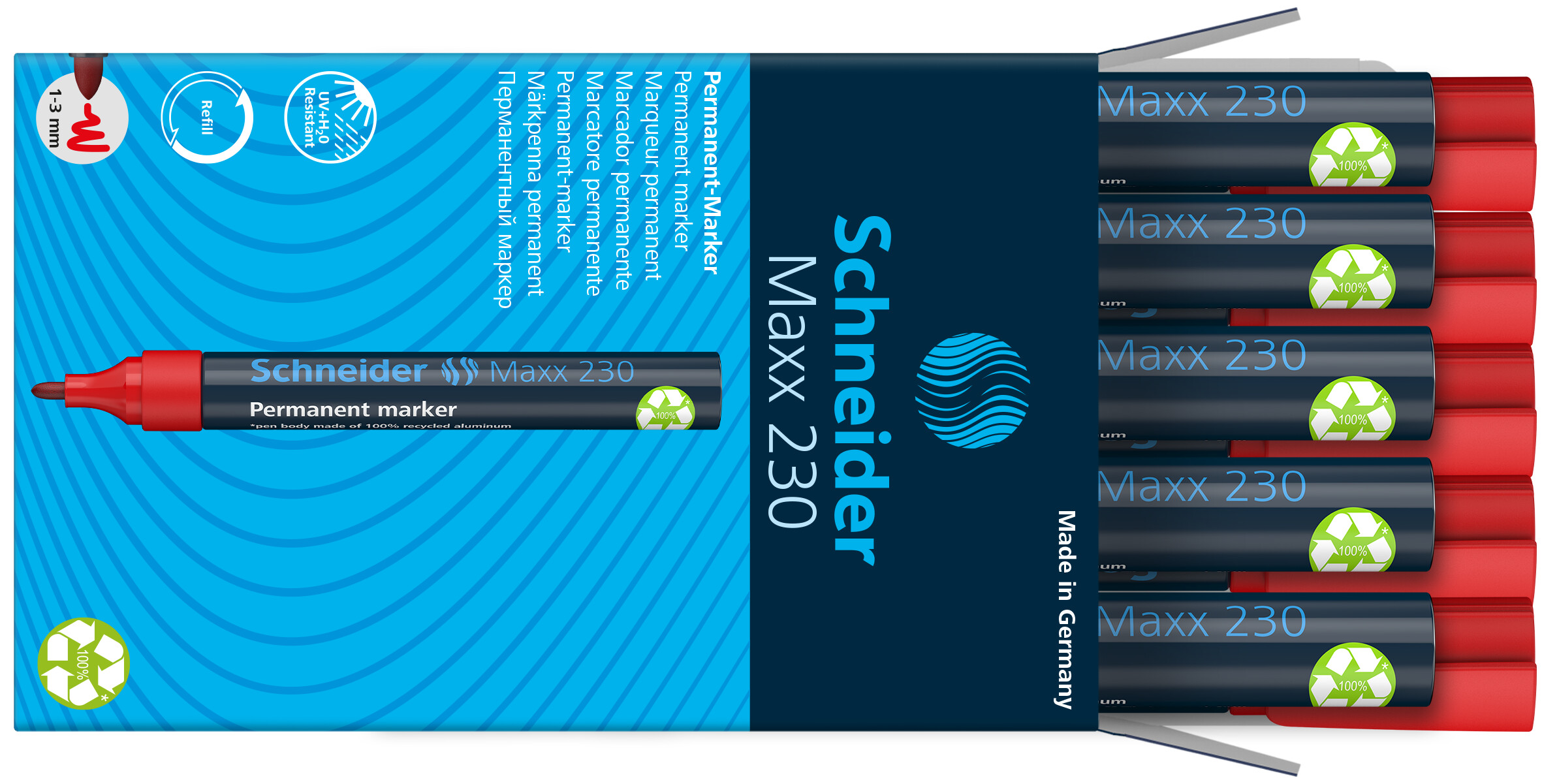 Permanentinis žymeklis Schneider 230, 1-3mm, apvaliu galiuku, raudonos spalvos