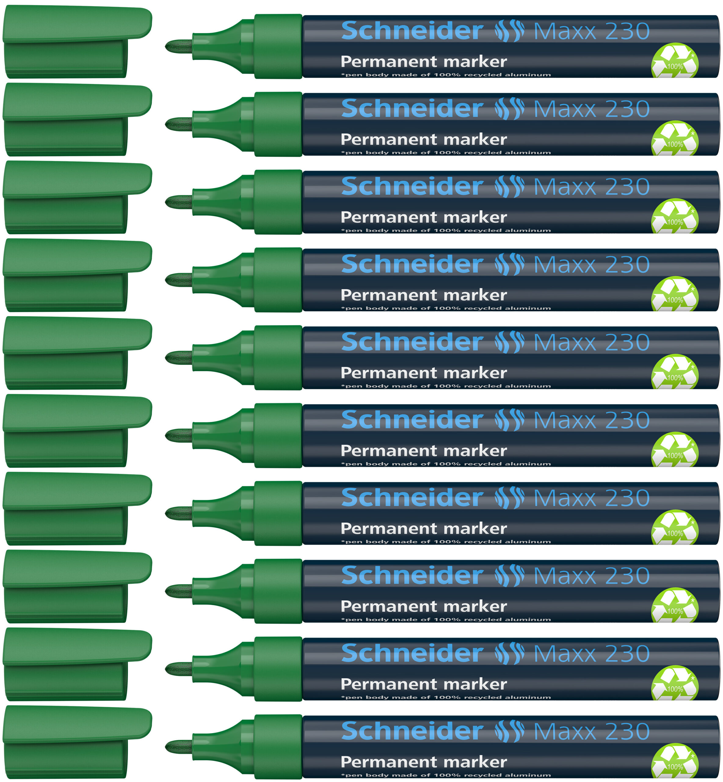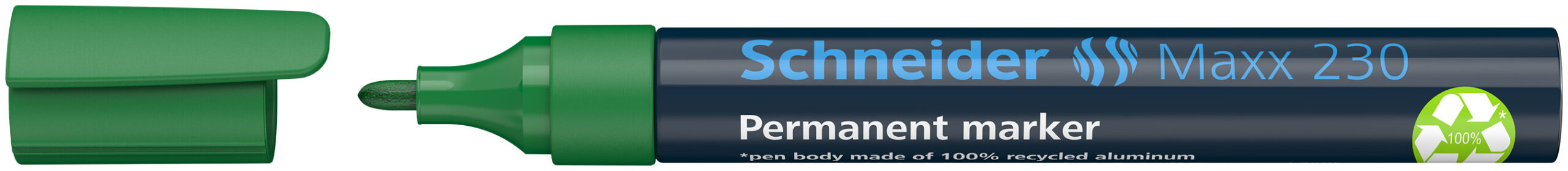 Permanentinis žymeklis Schneider 230, 1-3mm, apvaliu galiuku, žalios spalvos