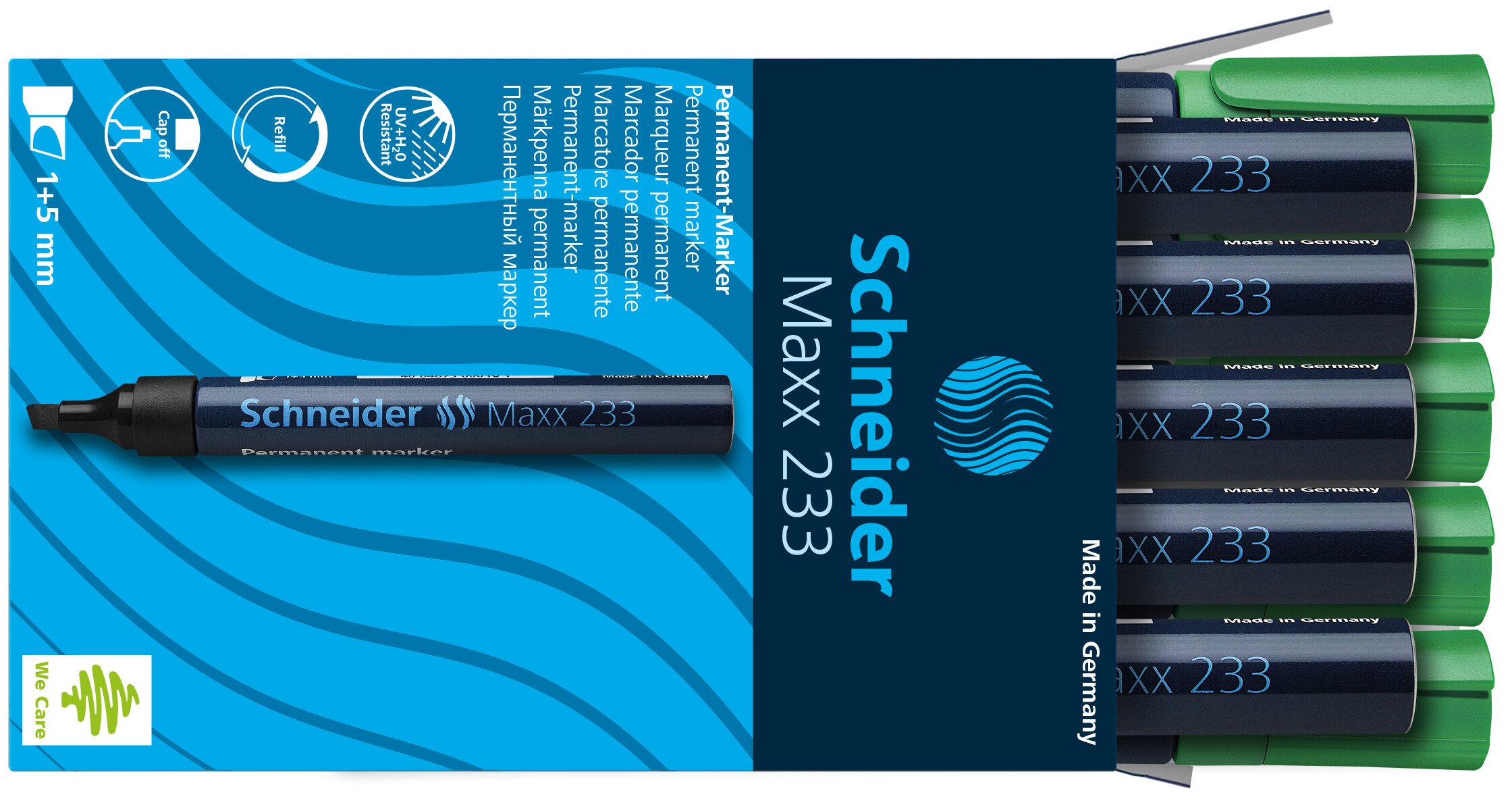 Permanentinis žymeklis Schneider 233, 1-5mm, kirstu galiuku, žalios spalvos
