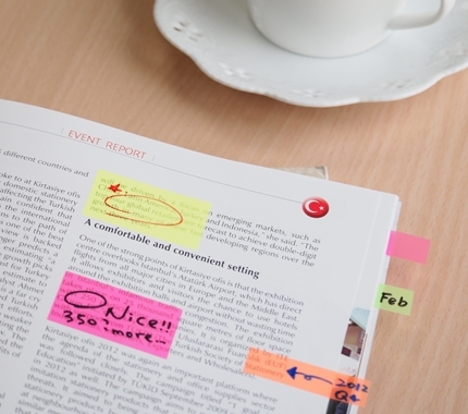• Plastikiniai žymekliai gali būti perklijuojami daugelį kartų, nepalieka dėmių.