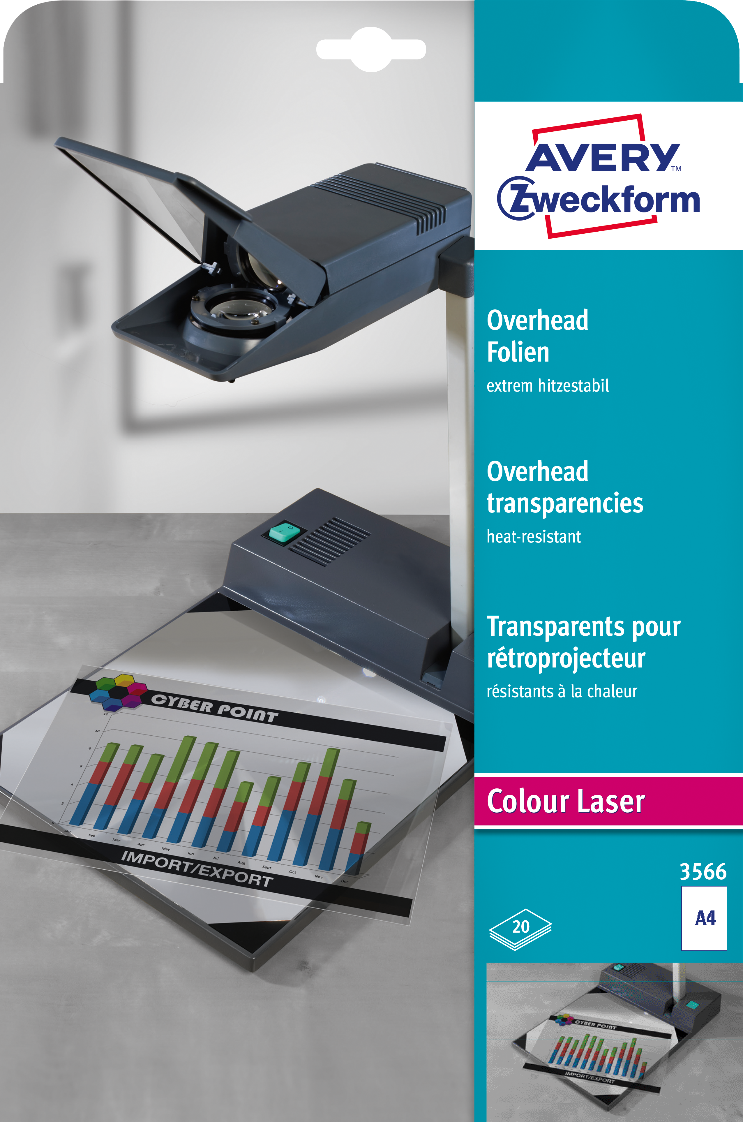 Lazerinių spausdintuvų skaidrės, A4 skaidrės, Zweckform 3566, skaidrės spausdinimui, 20 lapų skaidrės, aukštos kokybės skaidrės, pristatymo skaidrės, lazerinės skaidrės, spausdinimo popierius, EAN 4004182035665