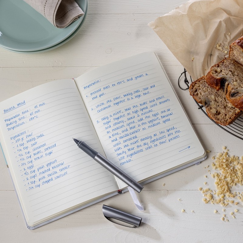 • Įrengtas tvirtas metalinis segtukas ir standartinė rašalo kapsulė.