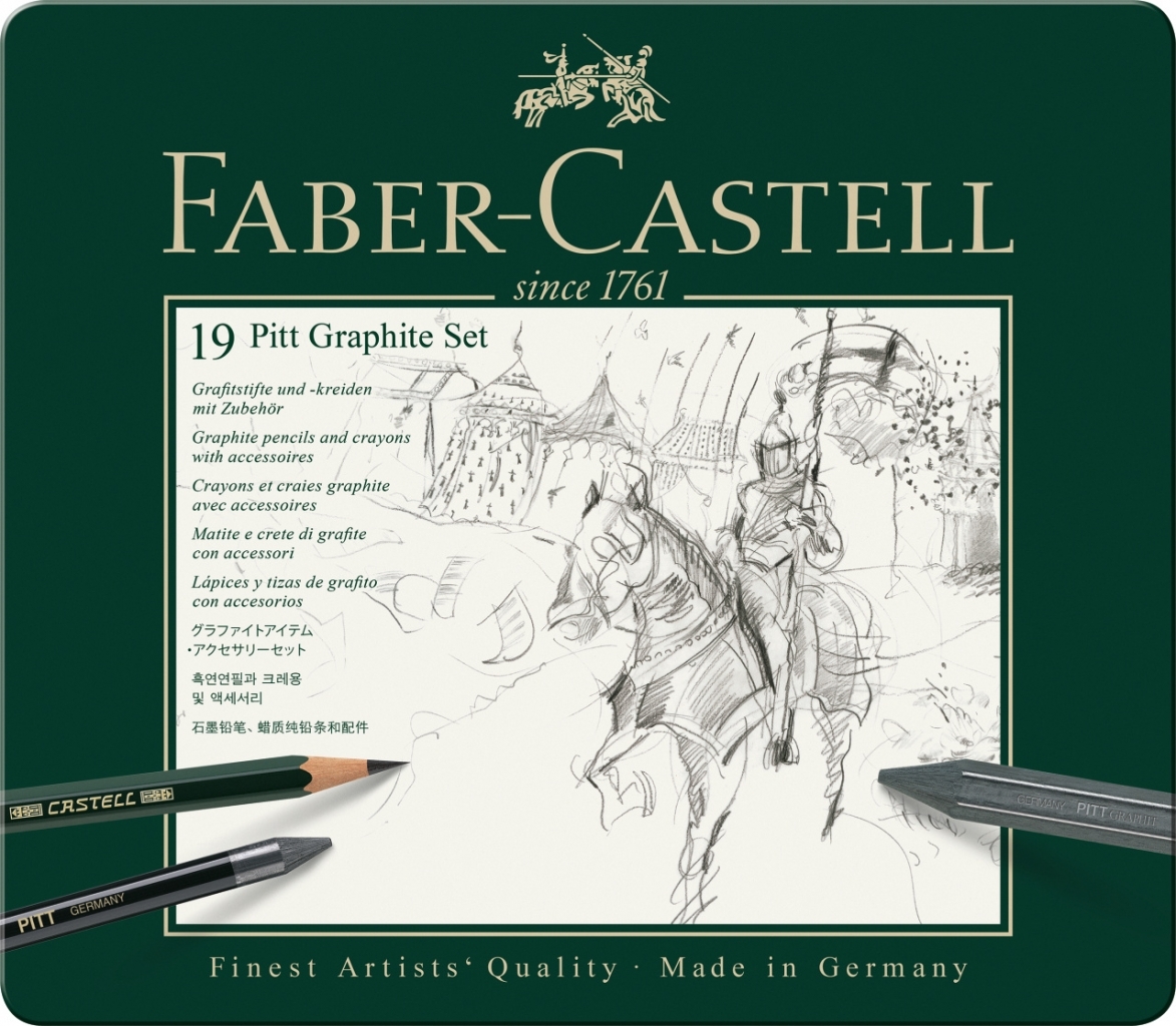• Rinkinį sudaro: aukštos kokybės pieštukai (2B, 4B, 8B), pieštukai Jumbo (2B, 4B, 8B), 3 akvareliniai pieštukai (3B, 6B, 9B), 2 grafito lazdelės (6B, 9B). Trintukas, dvigubas drožtukas ir teptukai