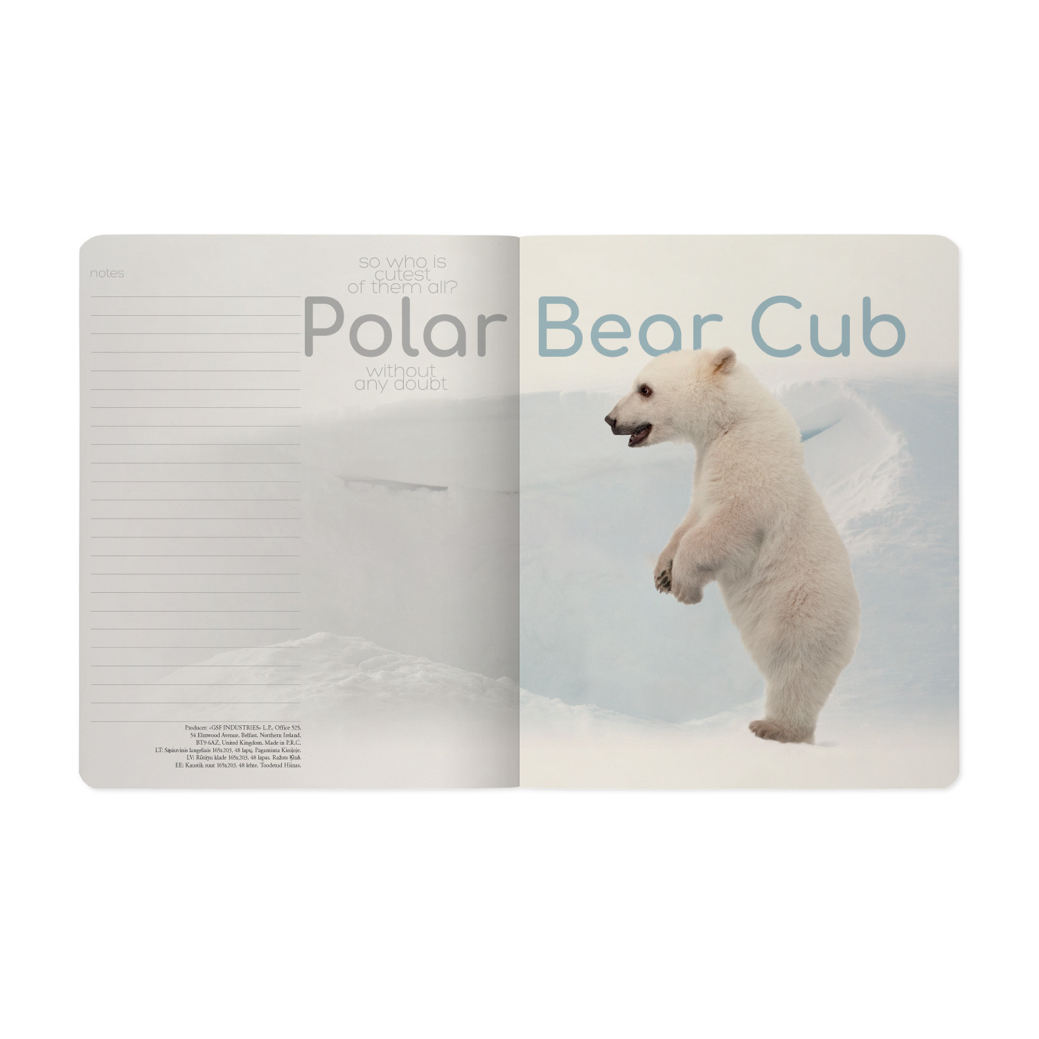 Sąsiuvinis Bruno Visconti Polar Bear Cub 3, A5, langeliais, 48 lapų