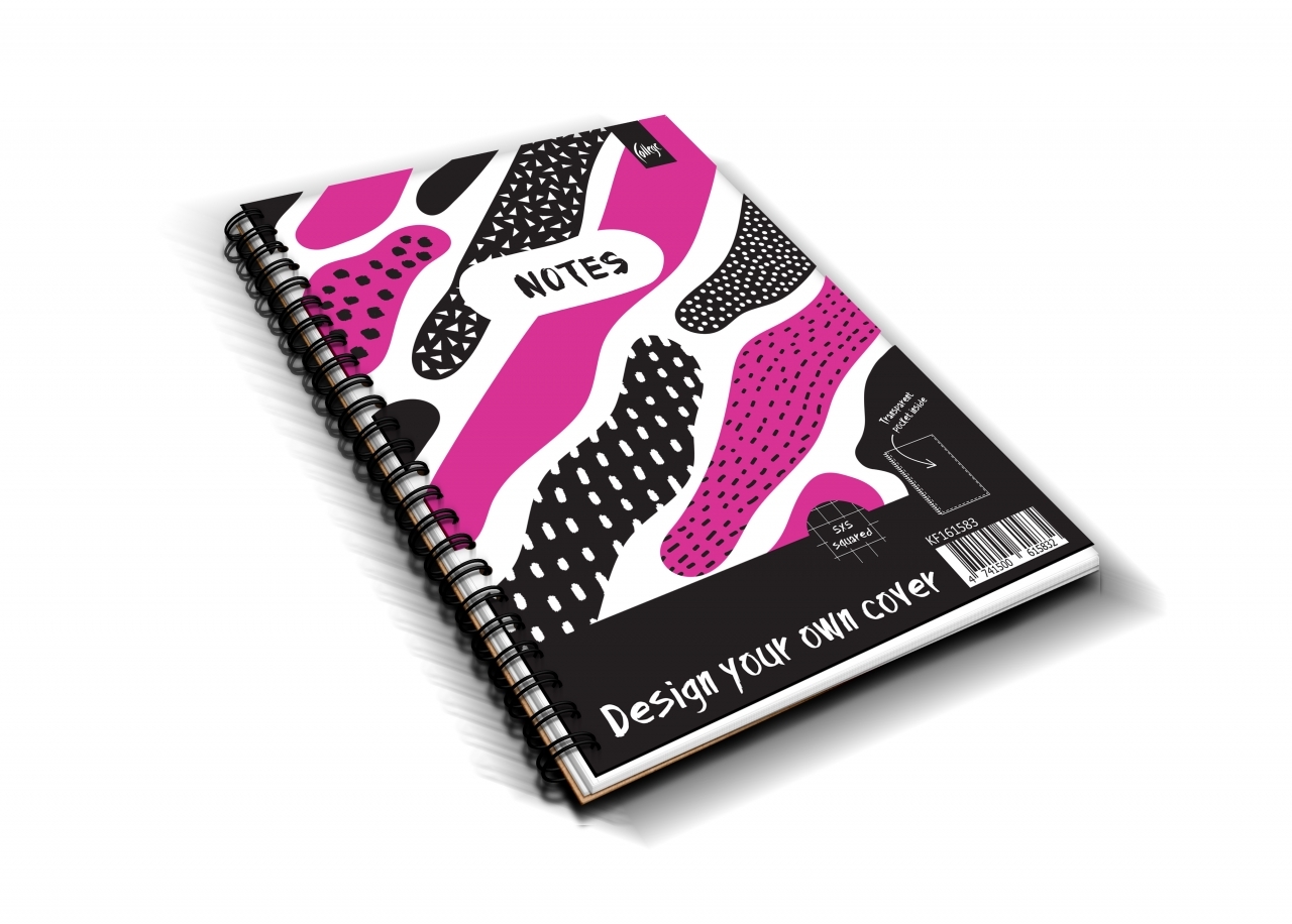 Šis universalus sąsiuvinis sukurtas atsižvelgiant į ilgaamžiškumą ir patogumą. Jame yra tvirtas polipropileno (PP) viršelis, patikimai apsaugantis jūsų turinį. Unikali priekinė kišenė leidžia lengvai individualizuoti sąsiuvinį, įdėjus savo dizainą ar nuotrauką. Tvirtas šukinis spiralinis įrišimas, esantis šone, užtikrina sklandų puslapių vertimą ir patogų, plokščią rašymo paviršių be jokių trukdžių.