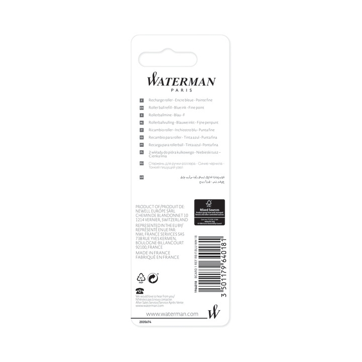 Waterman Rollerball Rašiklio šerdelė, F, Mėlynas