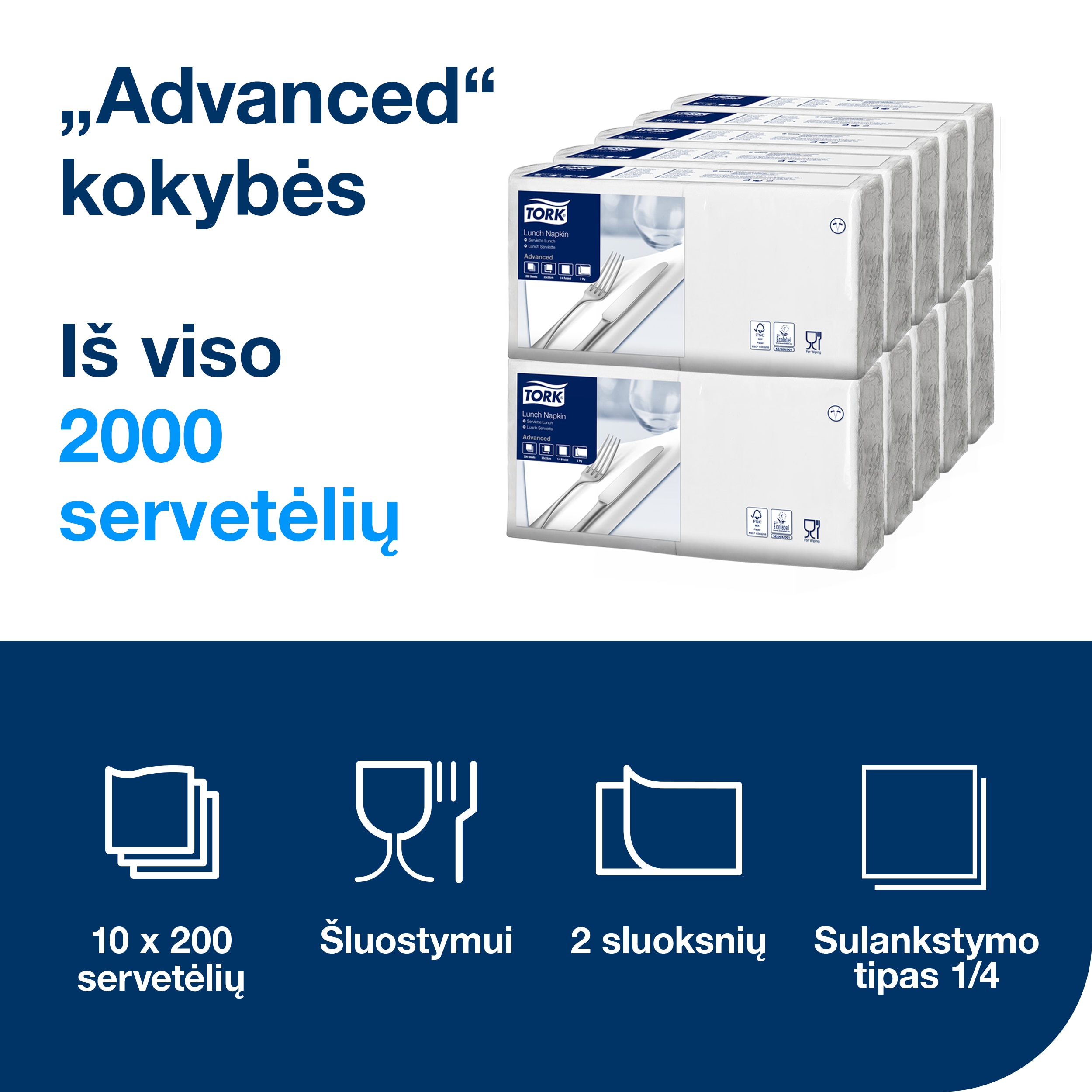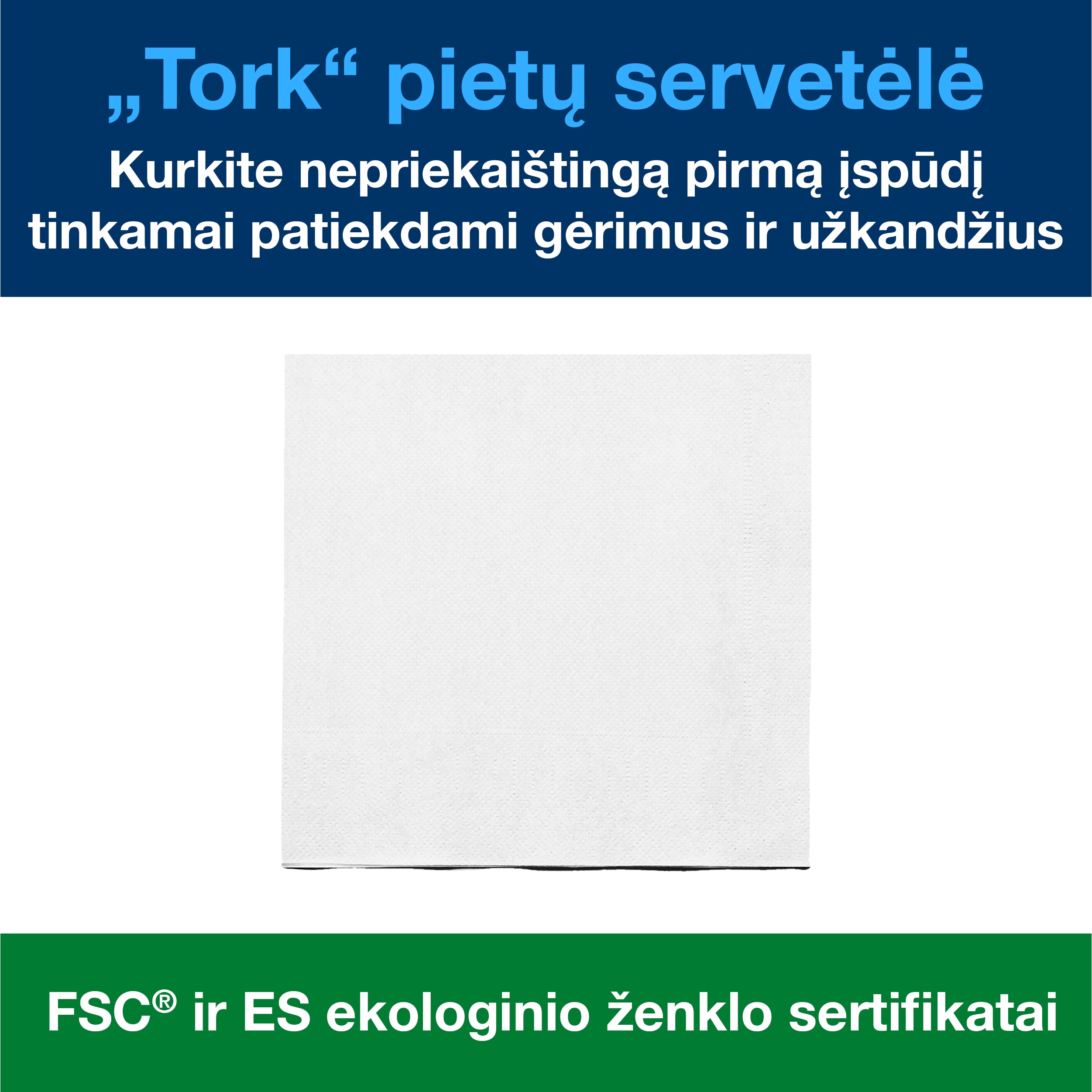 • Tork“ pietų servetėlės idealiai tinkančios serviruoti lengvus valgius ir užkandžius