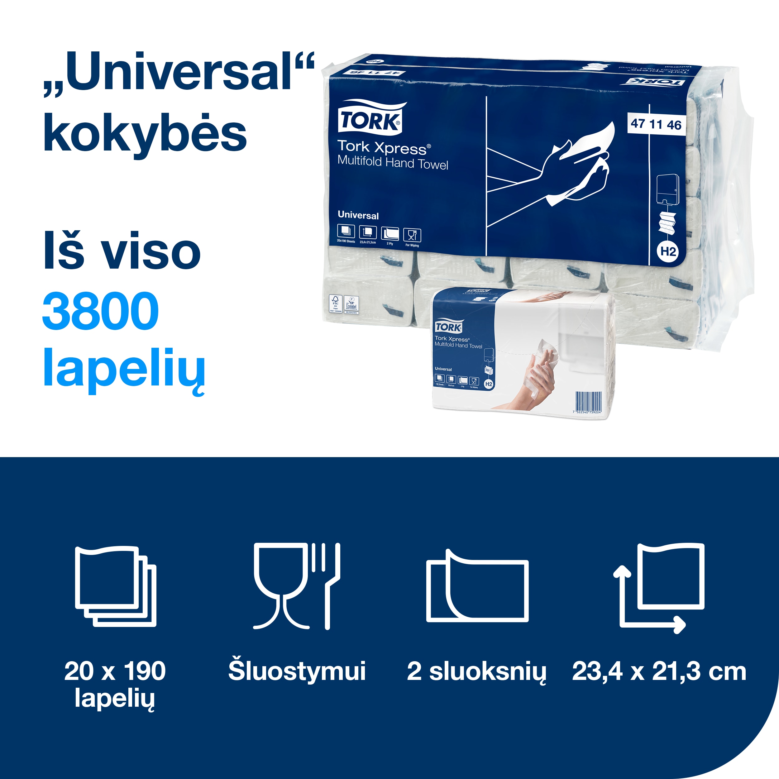 Servetėlės Tork Xpress Multifold Universal H2 (471146), 2 sluoksniai, 190vnt., baltos spalvos (EKO)
