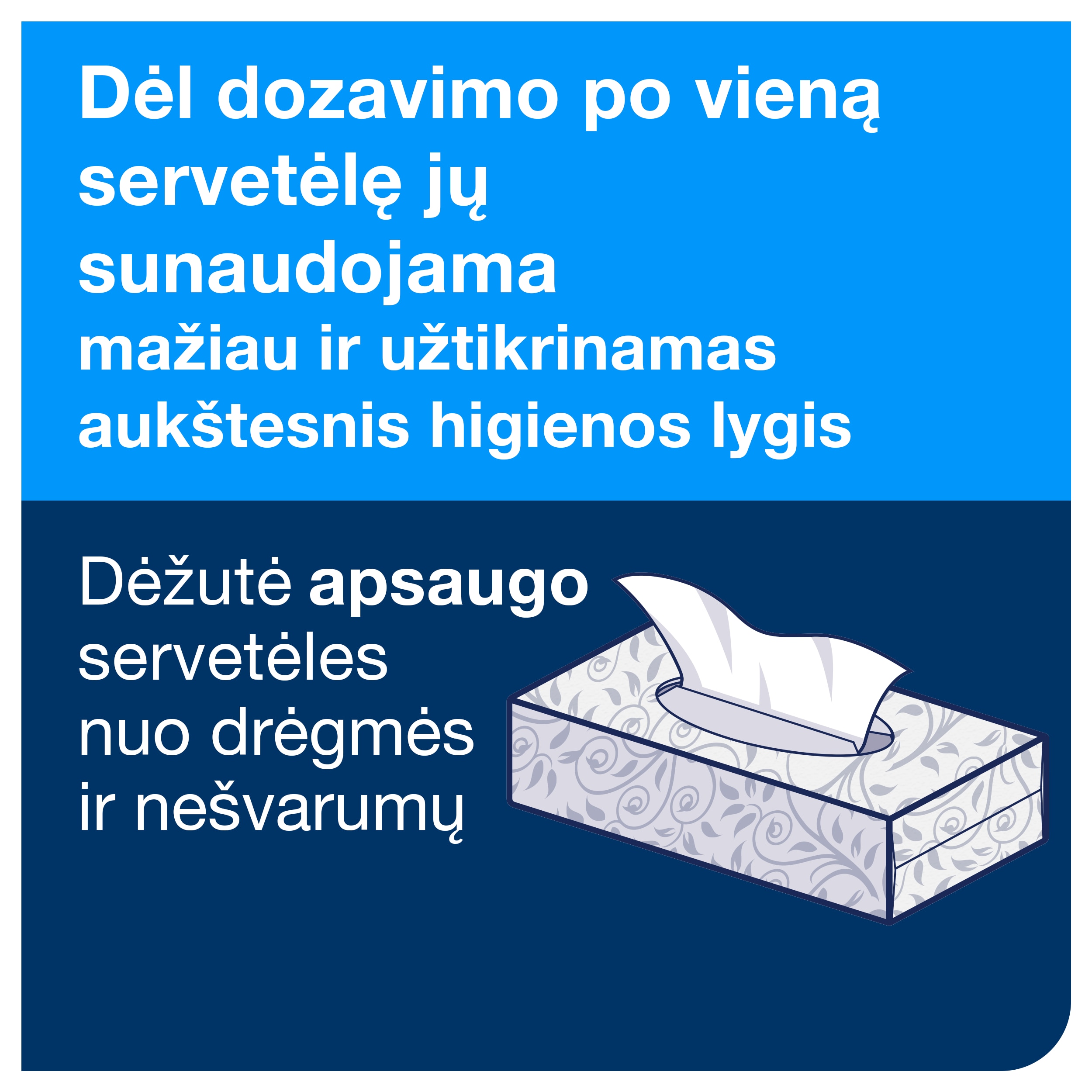 • 100 servetėlių praktiškoje ir elegantiškoje kartoninėje dėžutėje