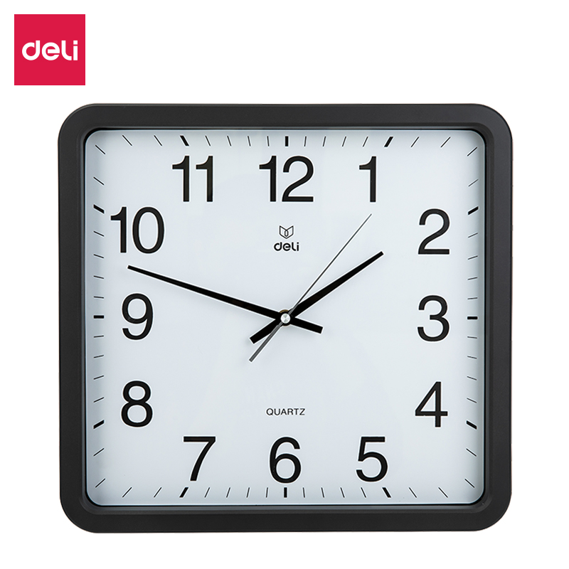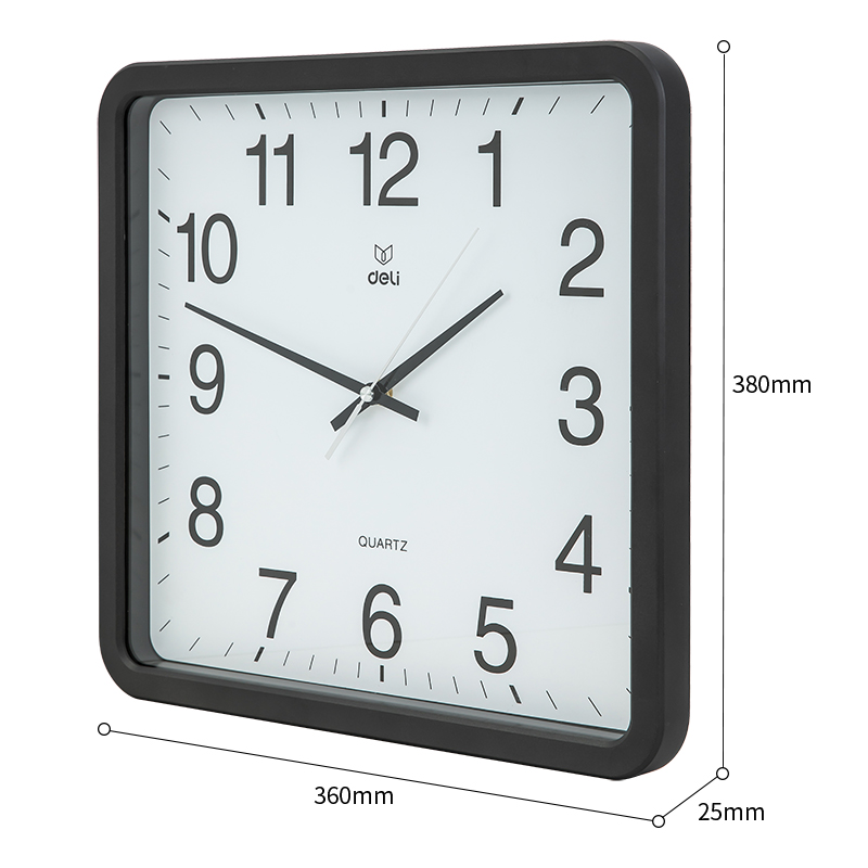 Sieninis laikrodis Deli 8824, 36 cm, juodos spalvos rėmelis, kvadratinis