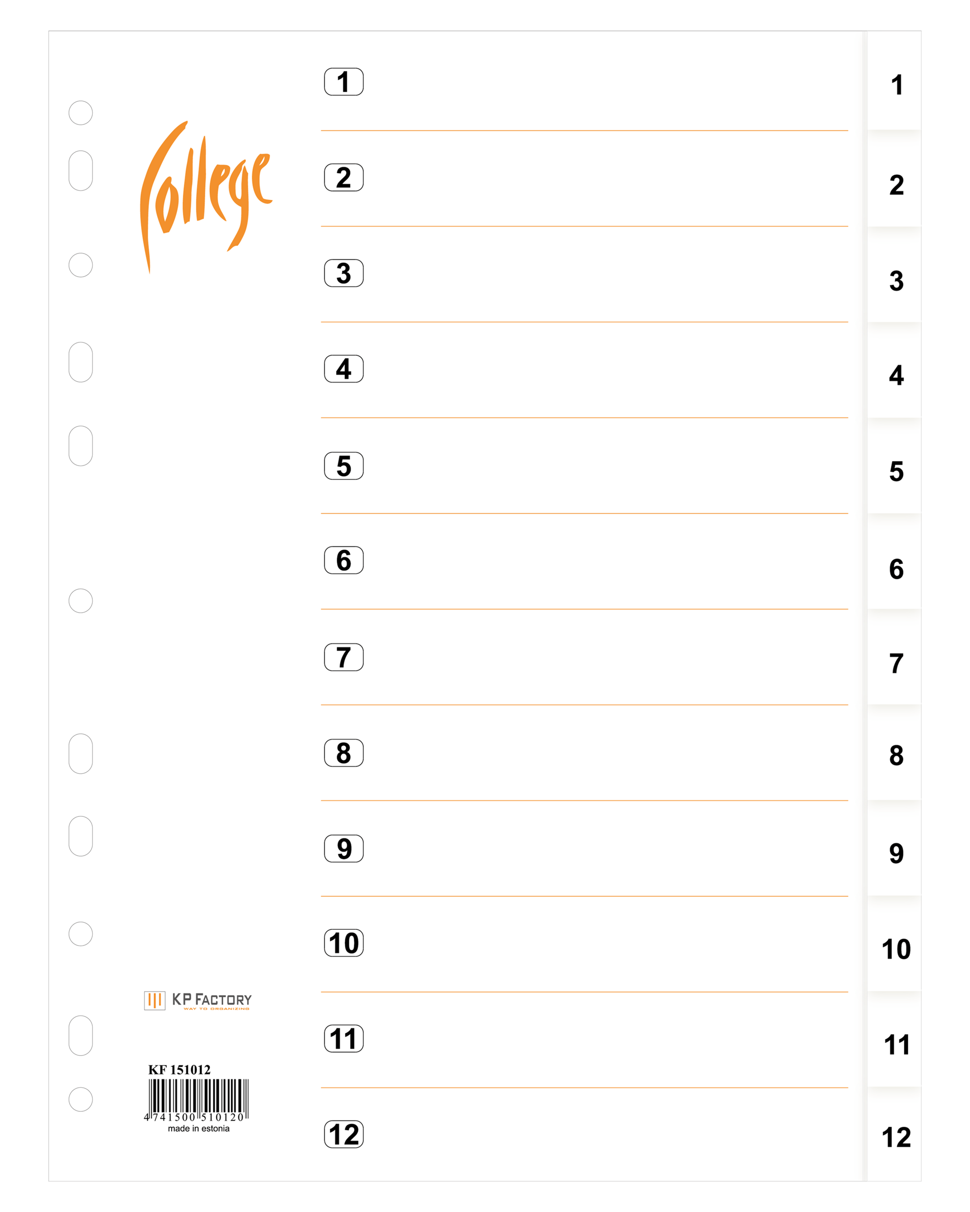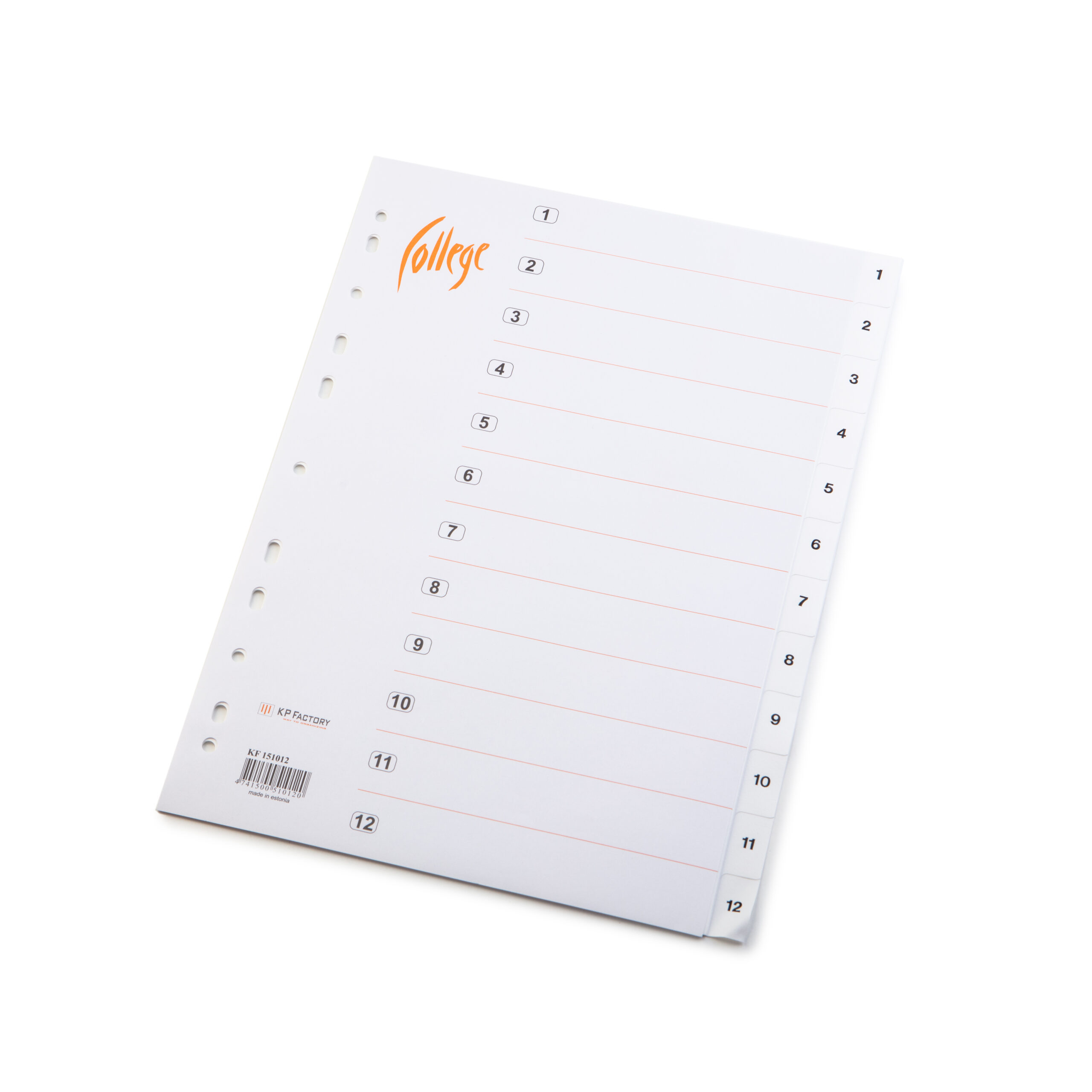 Skiriamieji lapai College, A4, 1-12, plastikiniai, baltos spalvos, numeruoti