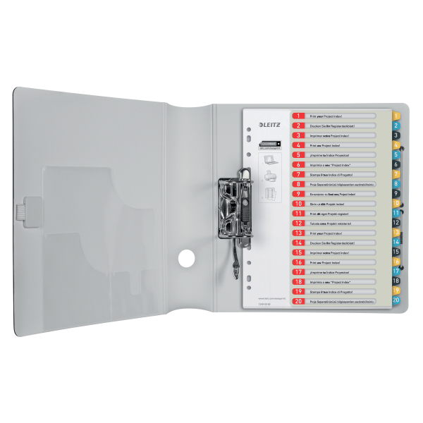 •Tvarkykite dokumentus ir bylas naudodami tvirtus ir patvarius, numeruotus 1-5 Leitz Cosy skirtukus;
