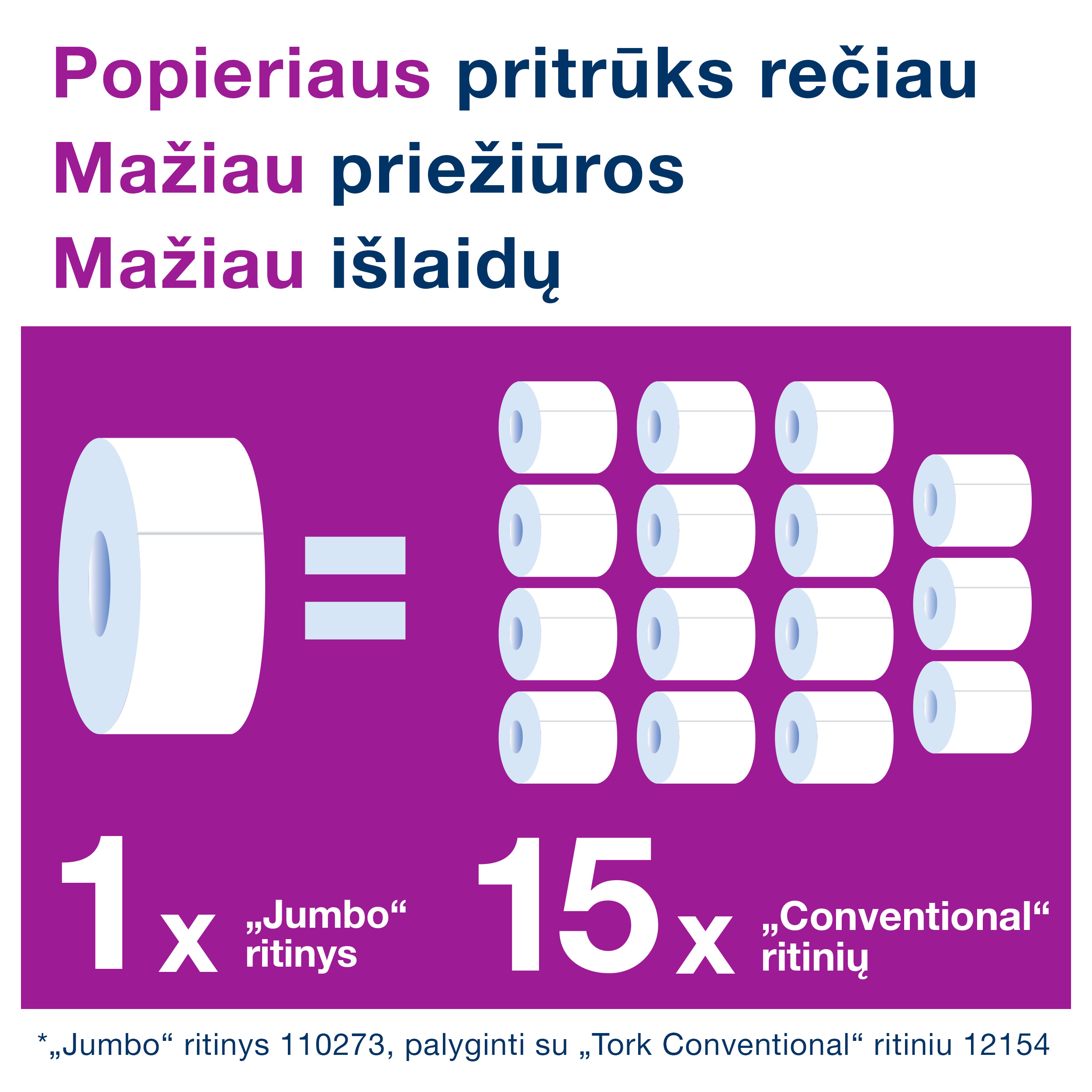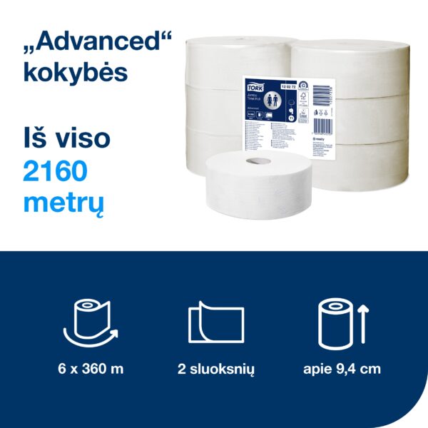 Tualetinis popierius Tork Advanced Jumbo T1, 120272, 2 sluoksniai, 360m, 1800 lapelių, baltos spalvos, 1vnt