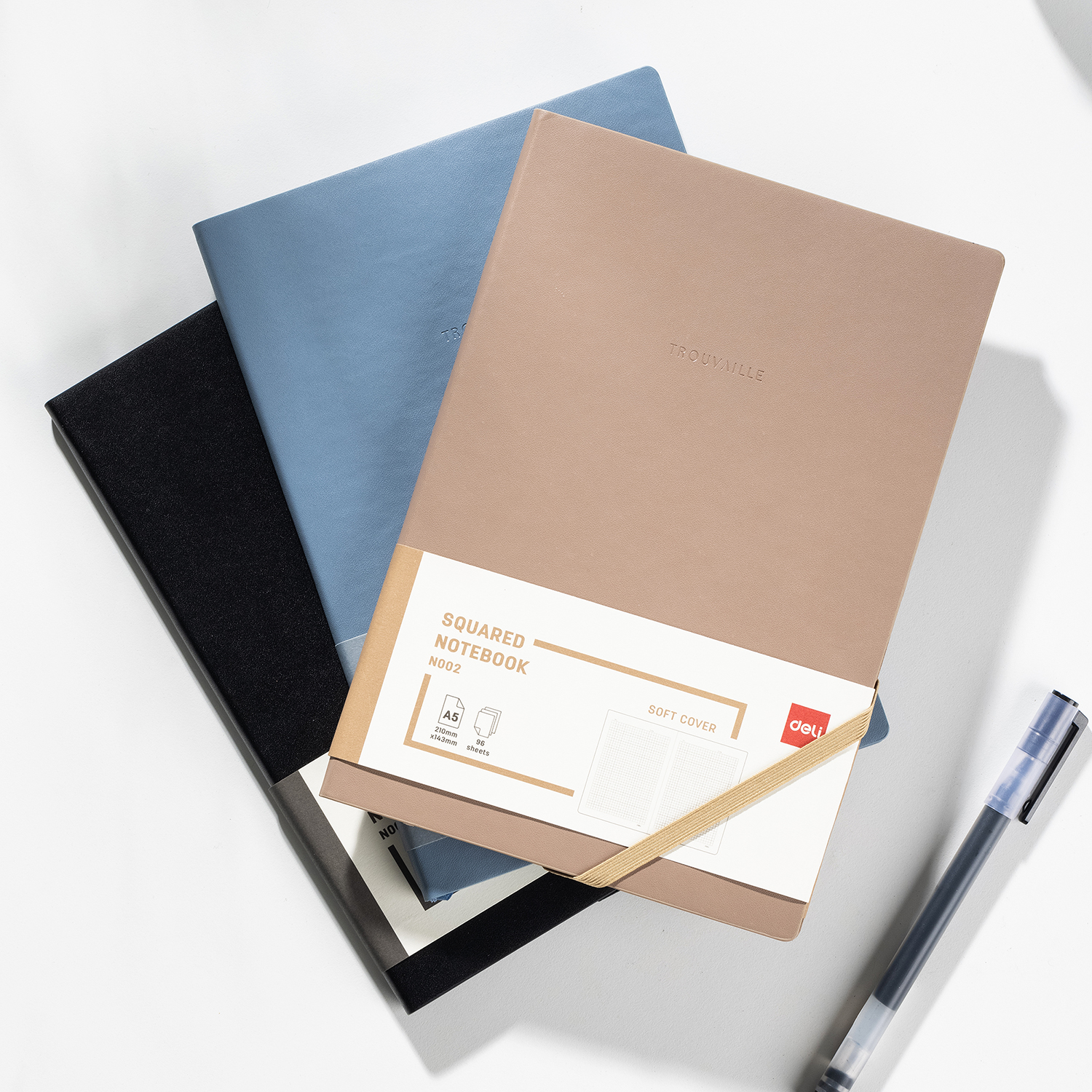Užrašų knygutė DELI , A5, 96lapų, langeliais, pu-viršelis, įvairių spalvų