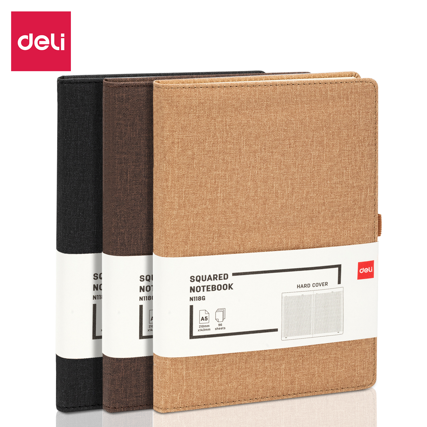 Užrašų knygutė DELI EN118G, A5 96 lapų, 5×5 langeliais, PU kietas viršelis, smėlio spalvos