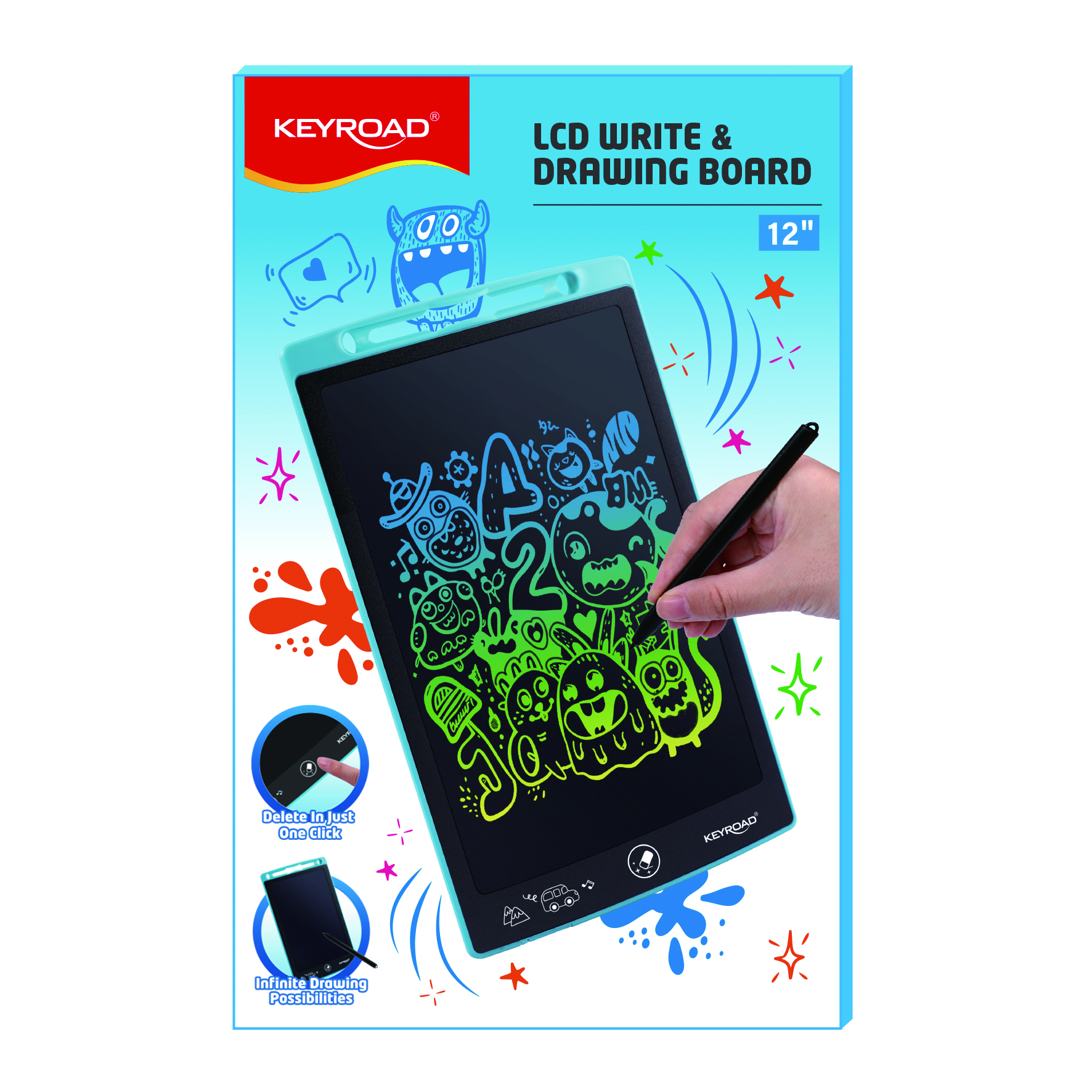 Vaikiška piešimo lenta Keyroad 12″ splavotos spalvos LCD
